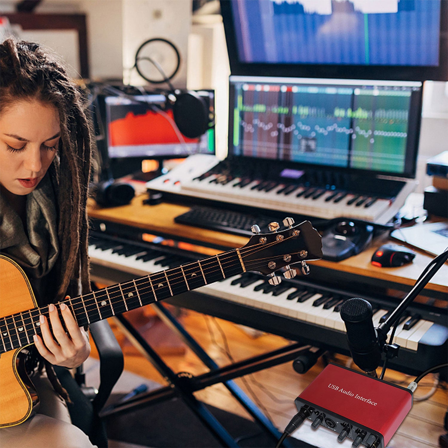 - 【Widely uses】USB Audio Interface is a highly-rated and popular product that provides a simple and effective way to connect your computer to professional audio equipment. It is designed for musicians, podcasters, and recording artists who need a reliable and high-quality audio interface to record their music or podcast.